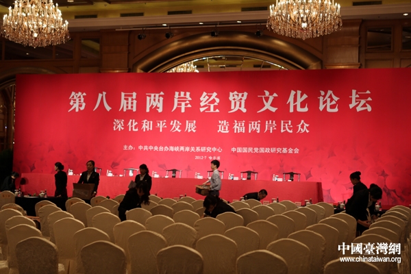 第八屆兩岸經貿文化論壇由中共中央臺灣工作辦公室海峽兩岸關系研究中心與中國國民黨國政研究基金會共同主辦。與會人士圍繞“深化和平發展、造福兩岸民眾”這一主題,就和平發展回顧與前瞻、深化經貿合作、擴大文教交流等三項議題進行研討。(中國臺灣網記者 陳佳慧)