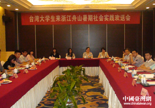 臺灣大學生來浙江舟山暑期社會實踐歡送會。(圖片來源:舟山市臺辦)