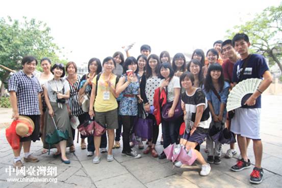 8月13日,由宋慶齡基金會和臺灣“十大杰出青年基金會”共同組織的“臺灣青年學生交流團”一行游覽蘇州,圖為團員在同里古鎮合影留念。(中國臺灣網孟雅詩 攝)