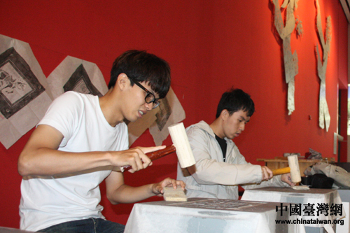 臺灣同學正在認真制作拓片。(中國臺灣網 黃艷艷 攝)