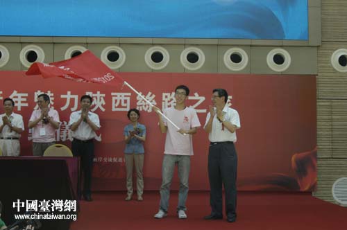 陜西省政協(xié)副主席王曉安在啟動(dòng)儀式上致詞,并向?qū)W生代表授旗。王曉安對臺(tái)灣中、南部大學(xué)師生來陜訪問表示熱烈歡迎,在介紹了陜西的基本情況后,他說,希望通過今天以及其他各種形式的交流活動(dòng),推動(dòng)陜臺(tái)交流更上新臺(tái)階,讓陜臺(tái)青年接過兩岸發(fā)展的接力棒,更加踴躍地投身到兩岸交流合作中來,更多地了解陜西,關(guān)愛陜西,共同弘揚(yáng)中華文化,攜手共創(chuàng)美好未來。