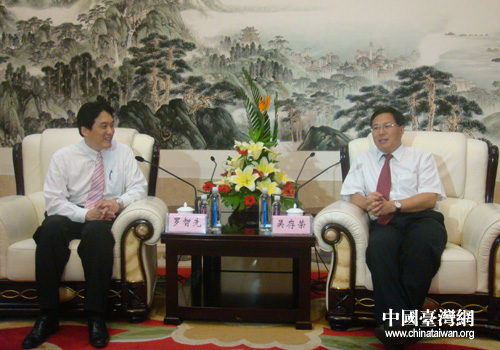 安徽省委常委、合肥市委書(shū)記吳存榮(右)會(huì)見(jiàn)了統(tǒng)一企業(yè)(中國(guó))投資有限公司副董事長(zhǎng)羅智先(左)一行。(圖片來(lái)源:合肥市臺(tái)辦)