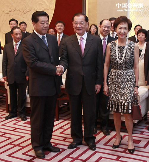 中國國際經濟交流中心理事長曾培炎,全國政協副主席黃孟復、林文漪,全國政協機關黨組書記、副秘書長孫懷山,中共中央臺灣工作辦公室、國務院臺灣事務辦公室主任王毅,中共江蘇省委書記羅志軍、江蘇省省長李學勇等參加會見。