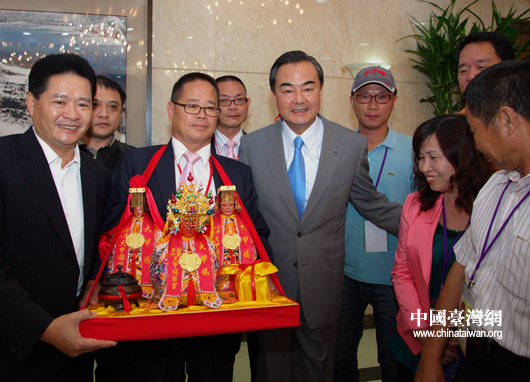 9月26日,中共中央臺辦、國務院臺辦主任王毅在北京會見以鄭銘坤先生為團長的臺灣媽祖聯誼會大型代表團。(中國臺灣網發 陳筠攝)