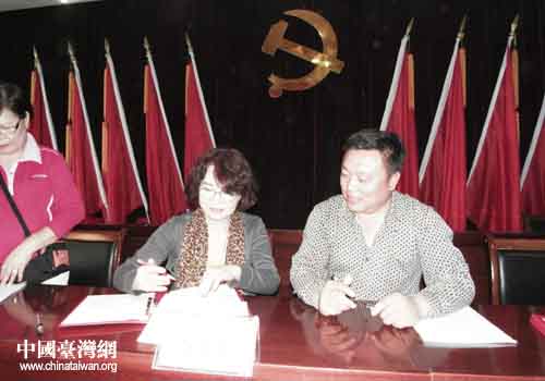 參訪團(tuán)代表與農(nóng)6師101團(tuán)3連簽署友好合作意向書(shū)。(圖片來(lái)源:新疆生產(chǎn)建設(shè)兵團(tuán)臺(tái)辦)