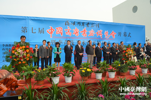 中國臺灣網(wǎng)10月16日聊城消息 日前,海峽兩岸書畫情——第七屆中國(高唐)書畫博覽會暨李奇茂美術(shù)館開館儀式在聊城高唐舉行。山東省委常委、統(tǒng)戰(zhàn)部長顏世元,中國國民黨副主席蔣孝嚴,國民黨中央評議委員、兩岸文化藝術(shù)交流小組主任、中華兩岸文化藝術(shù)基金會會長莊漢生,臺灣著名畫家、中華文化海峽兩岸交流協(xié)會榮譽會長李奇茂,國臺辦交流局副局長曲萌,山東省臺辦主任張雪燕,聊城市委書記宋遠方,市委常委、高唐縣委書記劉春華等參加了開幕式。