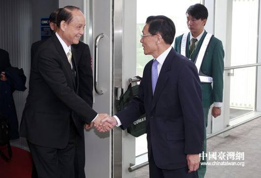 10月16日下午,由海基會董事長林中森率領的海基會文化經(jīng)貿參訪團于乘坐臺灣長榮航空班機抵達北京首都國際機場。海協(xié)會駐會副會長李炳才前往機場迎接。(中國臺灣網(wǎng)記者 田云鵬)