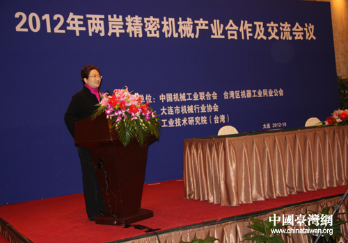 中國臺灣網10月18日大連消息 10月16日,由中國機械工業聯合會(中機聯)和臺灣區機械工業同業公會共同主辦、大連市人民政府承辦的“2012年兩岸精密機械產業合作及交流會議”在大連富麗華大酒店舉辦。來自兩岸精密機械產業界的企業家、專家學者及相關負責人共計100余人出席會議。大連市委常委、副市長曹愛華,中機聯會長王瑞祥及臺灣區機器工業同業公會理事長徐秀滄等出席會議并分別致辭。