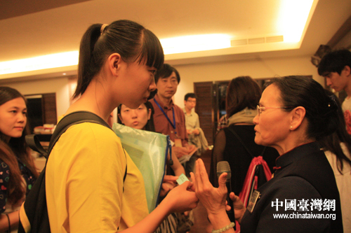 慈濟基金會方金香為大陸青年大學生解釋靜思語的含義副本(中國臺灣網 王文英 攝)