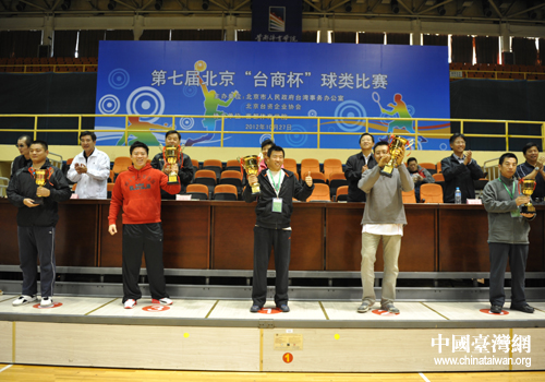 第七屆“臺(tái)商杯”球類(lèi)比賽頒獎(jiǎng)儀式現(xiàn)場(chǎng)。(圖片來(lái)源:北京臺(tái)資企業(yè)協(xié)會(huì))