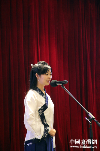 身著典雅古裝的主持人。(中國臺灣網 楊麗 攝)
