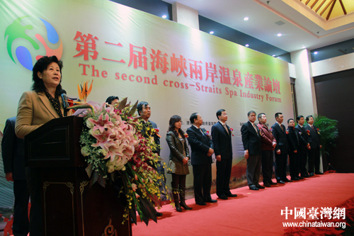 中國臺灣網12月4日濟南商河消息 4日上午,由山東省臺辦、山東省旅游局、濟南市政府主辦的第二屆海峽兩岸溫泉產業論壇在濟南市商河縣開幕。山東省臺辦主任張雪燕、山東省旅游局局長于沖、濟南市副市長張海波、臺灣溫泉觀光協會理事長張榮南等出席論壇。