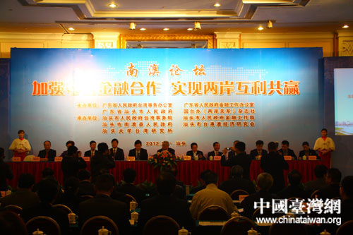 中國(guó)臺(tái)灣網(wǎng)12月8日汕頭消息 為加強(qiáng)粵臺(tái)金融合作,實(shí)現(xiàn)兩岸互利共贏,由國(guó)臺(tái)辦《兩岸關(guān)系》雜志社、廣東省人民政府臺(tái)灣事務(wù)辦公室、廣東省人民政府金融工作辦公室、廣東省汕頭市人民政府共同主辦的“2012年南澳論壇”8日上午在汕頭市隆重召開(kāi)。