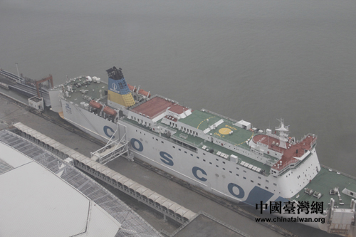 停泊在廈門港的直航臺灣的“中遠之星”大型客滾輪。(中國臺灣網 扶海濤 攝)