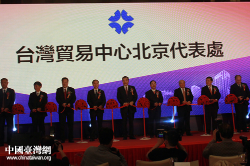 臺灣貿易中心北京代表處27日正式設立,圖為掛牌剪彩現場。(中國臺灣網 楊麗 攝)