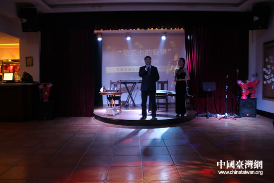 北京鄧麗君音樂(lè)主題餐廳總經(jīng)理鄭榮斌在“筆尖上的旋律:書畫、音樂(lè)、沙龍——鄧麗君60周年冥誕紀(jì)念活動(dòng)”上致辭。(中國(guó)臺(tái)灣網(wǎng) 何建峰 攝)