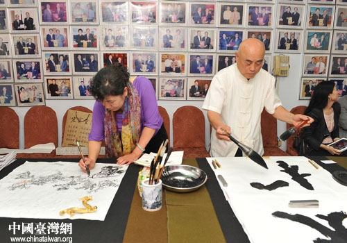 京臺(tái)兩地書(shū)畫(huà)家通過(guò)自己的作品表達(dá)了對(duì)兩岸交流合作前景的美好愿望。(北京通訊員 馬宇衡 攝)