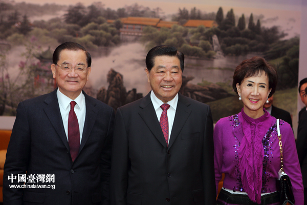 全國(guó)政協(xié)主席賈慶林26日下午在釣魚臺(tái)國(guó)賓館會(huì)見了中國(guó)國(guó)民黨榮譽(yù)主席連戰(zhàn)及臺(tái)灣各界人士訪問團(tuán)全體成員。