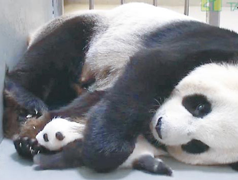 中國臺灣網8月16日消息 據臺灣《中國時報》報道,大陸贈臺大熊貓“圓圓”所生熊貓寶寶“圓仔”即將張開眼睛,臺北市立動物園希望她睜開眼最先見到的是媽媽“圓圓”,因此增加母女相處時間,昨晚園方首度嘗試讓“圓仔”依偎媽媽懷中睡覺,母女連續相處長達21小時,讓保育員感到欣慰。