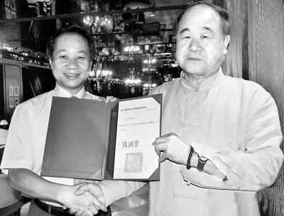 據臺灣媒體報道,臺師大校長張國恩4日上午帶領該校文學院院長、國際與僑教學院院長、國文系主任以及應用華語文學教授等人,在臺北與媒體茶敘時宣布,已成功延攬并禮聘到大陸諾獎得主莫言擔任該校講座教授,同時還拿出莫言接受聘書時與張國恩的合影(見圖)。