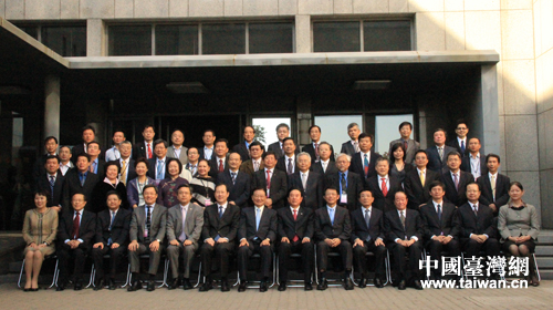 參加“兩岸產經合作與創新發展論壇”的兩岸專家學者合影留念。(中國臺灣網 扶海濤 攝)