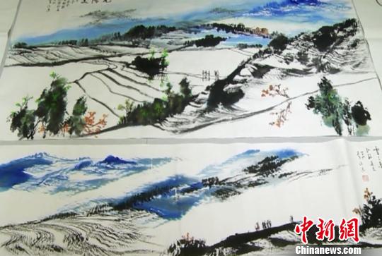 圖為兩岸和平文化藝術聯盟會秘書長李沃源畫作《元陽梯田》!钊A偉 攝