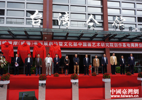 中國臺灣網10月22日威海消息 10月21日,海峽兩岸(威海)書畫展啟動暨文化部中國畫藝術研究院創作基地揭牌儀式在威海臺灣會館舉行。威海市委副書記趙熙殿,《兩岸關系》雜志社法人代表、主持工作副社長鐘河林,文化部中國畫藝術研究院院長、中國現代美術研究院院長、清華美院書畫高研班張津誠展沖刺書畫綜合班導師張津誠等出席啟動儀式,為基地揭牌,并參觀了書畫展和臺灣會館。威海市臺辦主任于連波主持儀式。