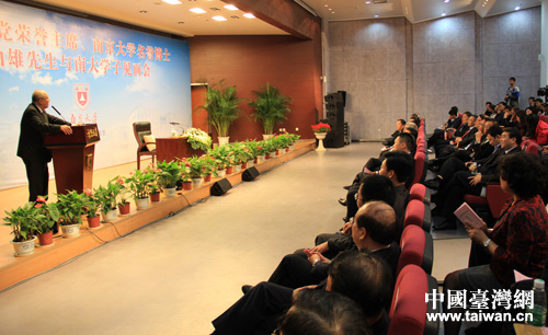 吳伯雄向南大學生發表演講。(中國臺灣網 王文英攝)