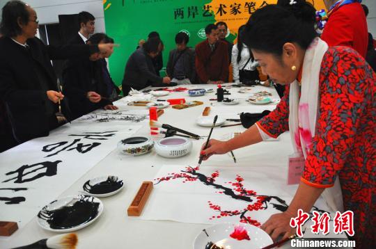 開幕儀式上,以臺灣中華美術(shù)協(xié)會理事長胡念祖、中華世紀(jì)書畫協(xié)會創(chuàng)始人郭善德為首的35名臺灣書畫藝術(shù)家和湖南書畫界聚首交流,切磋技藝,演繹文化同根源、湘臺一家親的“書畫傳奇”。