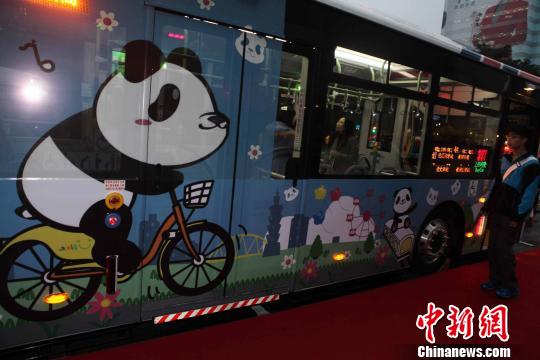 臺北市新引進一批3門低地板公共汽車,搭配大陸贈臺大熊貓寶寶“圓仔”彩繪涂裝,將于12月底陸續上路營運。
