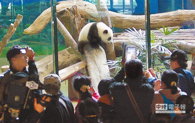 圓仔6日正式亮相第一天,臺(tái)北動(dòng)物園貓熊館內(nèi)擠滿排隊(duì)人潮