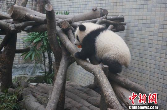 8日,臺北市立動物園公開了一組充滿情趣的照片,再現(xiàn)“圓仔”跟媽媽的一場“和平紅蘿卜之役”:這天是“圓圓”和“圓仔”到戶外活動場郊游的日子,早上“圓仔”量過體重后先到,它叼起活動場上唯一的1個紅蘿卜,努力地爬上棲架,正要坐下來準備“啃”紅蘿卜,但見做完檢查趕到活動場的“圓圓”,一個箭步就走上棲架,瞬間就將“圓仔”口中的紅蘿卜拿走,背對“圓仔”坐下來吃紅蘿卜。“圓仔”沒有哭鬧,自己找其它東西玩,讓媽媽享用胡蘿卜早餐。(記者 董會峰 葉小剛)