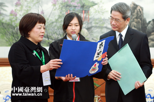 中國臺灣網(wǎng)1月10日北京消息 中共中央臺辦、國務院臺辦主任張志軍10日在北京會見了東莞臺商子弟學校葉宏燈董事長率領(lǐng)的畢業(yè)班學生“北京文化之旅”參訪團一行。