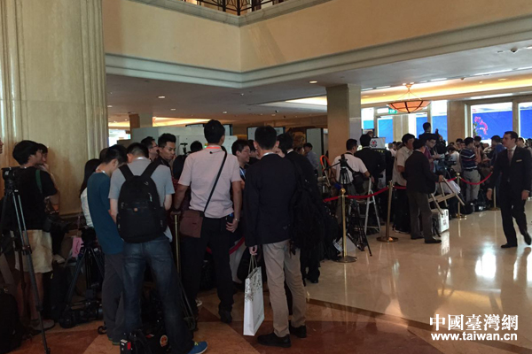 長槍短炮齊上陣,新加坡香格里拉飯店的記者已經(jīng)“人滿為患”。(中國臺灣網(wǎng) 吳曉寒 攝)