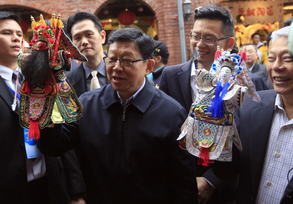海協(xié)會(huì)會(huì)長(zhǎng)陳德銘一行3日前往臺(tái)灣宜蘭,參訪傳統(tǒng)藝術(shù)中心,體驗(yàn)布袋戲等傳統(tǒng)文化。