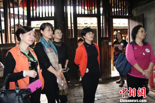 圖為女企業家在土樓里參觀!£惽锩贰z