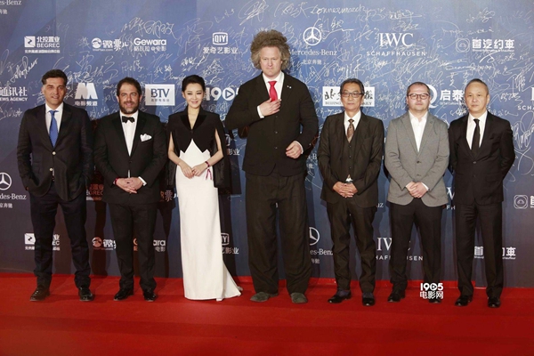 本屆北影節“天壇獎”評委亮相紅毯,右一為香港導演陳德森。