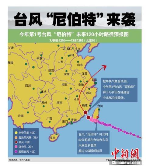 7月8日,2016年第1號臺風“尼伯特”(超強臺風級)于5時50分在臺灣臺東太麻里鄉沿海登陸,預計將于7月9日在福建中北部沿海登陸。中新社記者 張九玲 作