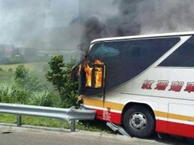 今天中午12時57分,臺灣桃園機場聯絡道發生自撞車禍,當地警消人員接獲通報,一輛游覽車因不明原因撞上護欄,整輛車隨即起火燃燒。中午13時21分火勢撲滅,車上26人罹難。失火游覽車屬玫瑰石通運有限公司,出廠時間為2010年5月,車齡僅6年,但曾有5次違規紀錄。