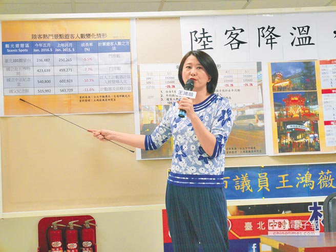 臺北市議員王鴻薇指出陸客降溫,許多觀光景點游客數和旅館住房率銳減。(圖片來源:臺灣“中時電子報”)