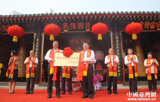 國務院臺辦副主任龍明彪為天后宮授牌。(中國臺灣網 吳曉寒 攝)