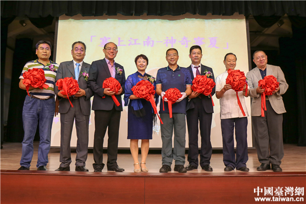 “塞上江南 神奇寧夏“攝影展剪彩儀式合影。(中國臺灣網(wǎng) 李岳 攝)