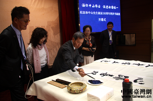 緬懷中山偉業 促進祖國統一”——紀念孫中山先生誕辰150周年兩岸書畫展在北京開幕。(中國臺灣網 李杰 攝)