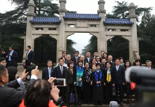 洪秀柱一行于30日晚間抵達南京。10月31日上午,綿綿秋雨中,洪秀柱率領中國國民黨大陸訪問團抵達南京中山陵拜謁,向孫中山先生致敬。