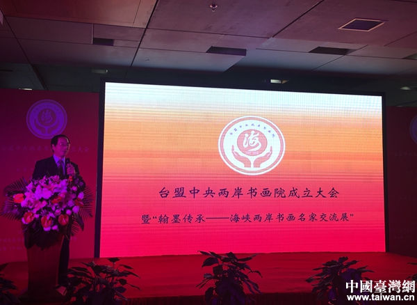 中國臺灣網11月18日北京電(記者 齊昕) 11月18日上午,臺盟中央兩岸書畫院成立儀式暨首屆“翰墨傳承”海峽兩岸書畫名家交流展在北京國家體育場文化中心舉辦。全國政協常委、臺盟中央常務副主席黃志賢,全國政協常委、臺盟中央兩岸書畫院院長梁國揚,全國政協常委、臺盟中央副主席吳國禎,中華兩岸文化藝術基金會會長莊漢生等嘉賓,及二十余位兩岸書畫家、著名企業家代表參加活動。