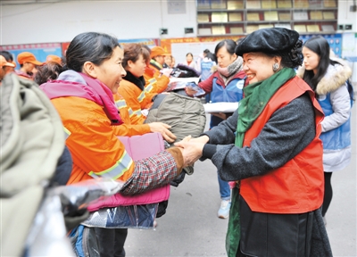 近日,四川綿陽微愛陽光義工聯攜手臺灣同胞投資企業協會,為50名優秀環衛工發放了內有棉衣、褲子、圍巾、手套、襪子等物的愛心大禮包。愛心大禮包是由定居綿陽的愛心人士臺灣“林媽媽”及綿陽微愛陽光義工聯志愿者和愛心人士共同募捐,其中棉背心、棉褲還是從上海定做后特地送到綿陽。