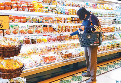 圖為顧客在超市中日本食品貨柜前選購。本報記者 張 盼攝