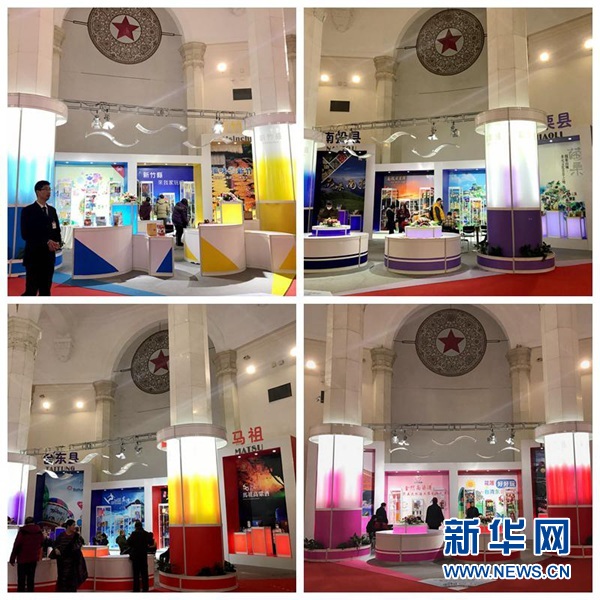 北京展覽館1號館的臺灣八縣市特色風景展示。章廉 攝