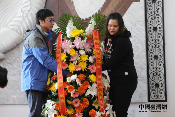 大學(xué)生敬獻(xiàn)花籃。(中國(guó)臺(tái)灣網(wǎng) 朱煉 攝)
