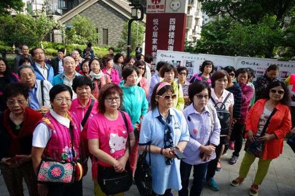 臺灣新北市宗親文化暨社區發展交流團參觀鎮江市京口區四牌樓街道虹橋社區。(鎮江市臺辦 章邦勇 攝)